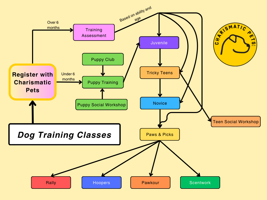 Please see the schematic we have drawn up to explain our complete training process through the ages and stages, and descriptions below for the adolescent and adult courses available.